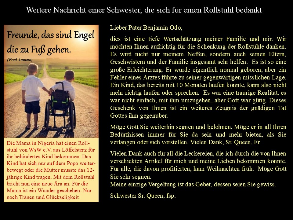 Schonungen im Oktober 2025 Liebe Freunde, Helfer, Spender und Gönner. Fast ein Jahr ist schon wieder vergangen seit unserer letzten Weihnachtspaketaktion. Dank Ihrer Mithilfe, Spendenbereitschaft und Ihres Engagements wurde die Aktion, wie auch in den letzten Jahren, wieder ein großer Erfolg. Wir durften zwei Sattelzüge auf die Reise nach Kroatien und Bosnien-Herzegowina in die Orte Vukovar, Vinkovci, Ivankovo und Domanovici schicken. Die Ladungen der zwei Lkws bestanden aus 1.819 großen Paketen und 17 Paletten mit Lebensmitteln, 30 Paketen mit Hygieneartikeln, vielen Paketen mit Kleidung. Weiterhin lieferten wir Spielsachen, Fahrräder, Rollatoren und vieles mehr. Insgesamt wurden 23,5 Tonnen an Hilfsgütern geliefert Zusätzlich wurden noch 1.500 Euro für die Aktion „Brot und Milch“ für die Kinder in Vukovar, 1.500 Euro für die Aktion „Holz und Kohle“ in Vinkovci unserem Fahrer zur Überbringung übergeben. Eine an Leukämie erkrankte Jugendliche erhielt 500 Euro für teure Medikamente, ebenso eine schwerkranke, alleinstehende ältere Frau. Pfarrer Korov aus Koska bekam 1.000 Euro für besondere Notfälle. Das Seniorenheim in Domanovici erhielt zusätzlich zu den Weihnachtspaketen 3.000 Euro für Lebensmittel und Medikamente. Für die Kinder und die Erwachsenen in Vukovar, Vinkovci, Ivankovo und Domanovici waren Ihre Pakete wieder wunderbare Weihnachtsgeschenke. Die Freude und Dankbarkeit der Bevölkerung über diese Geschenke war sehr groß. |